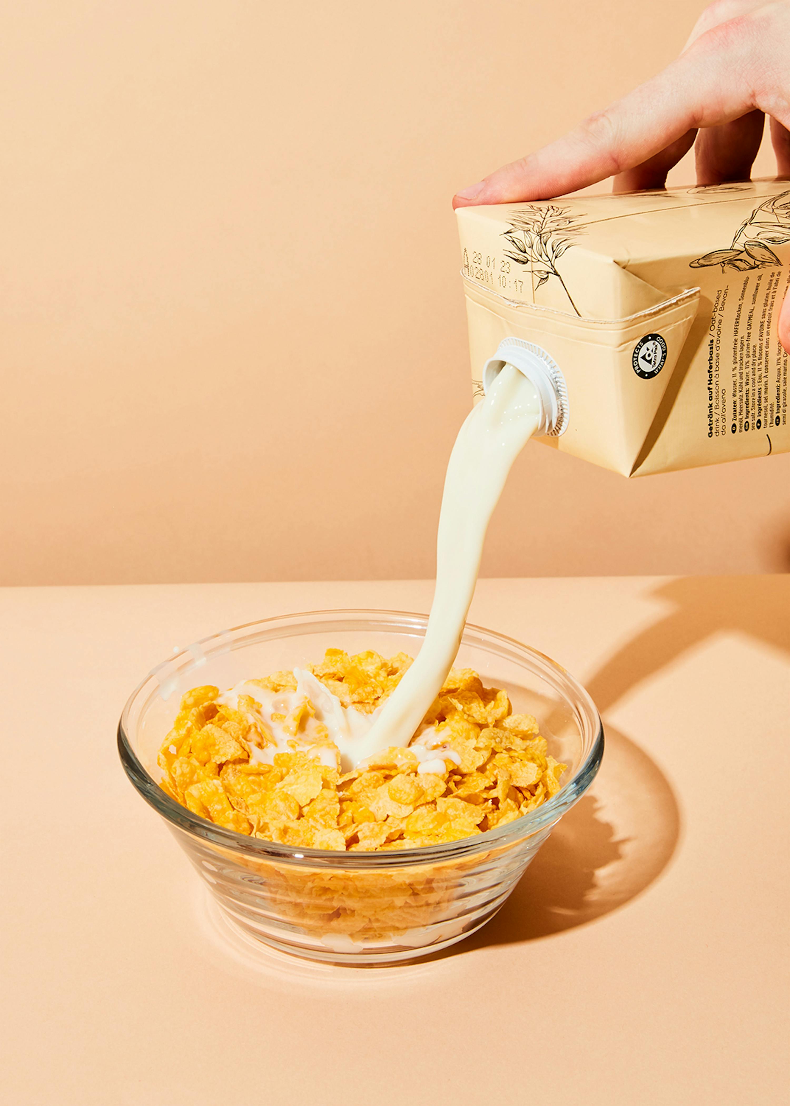 Lieber Cornflakes mit Milch oder Cornflakes ohne Milch und mit Joghurt? Was das Frühstück angeht, haben wir die beste Kombi schon gekürt. Schneller und leckerer wird es nämlich kaum: Gib unseren Haferdrink als pflanzliche Milchalternative in eine Schüssel, dann kommen Cornflakes, gefriergetrocknete Pfirsichscheiben, Kakaonibs und ein großer Klecks Pekannussmus dazu und schon kannst Du losmampfen!