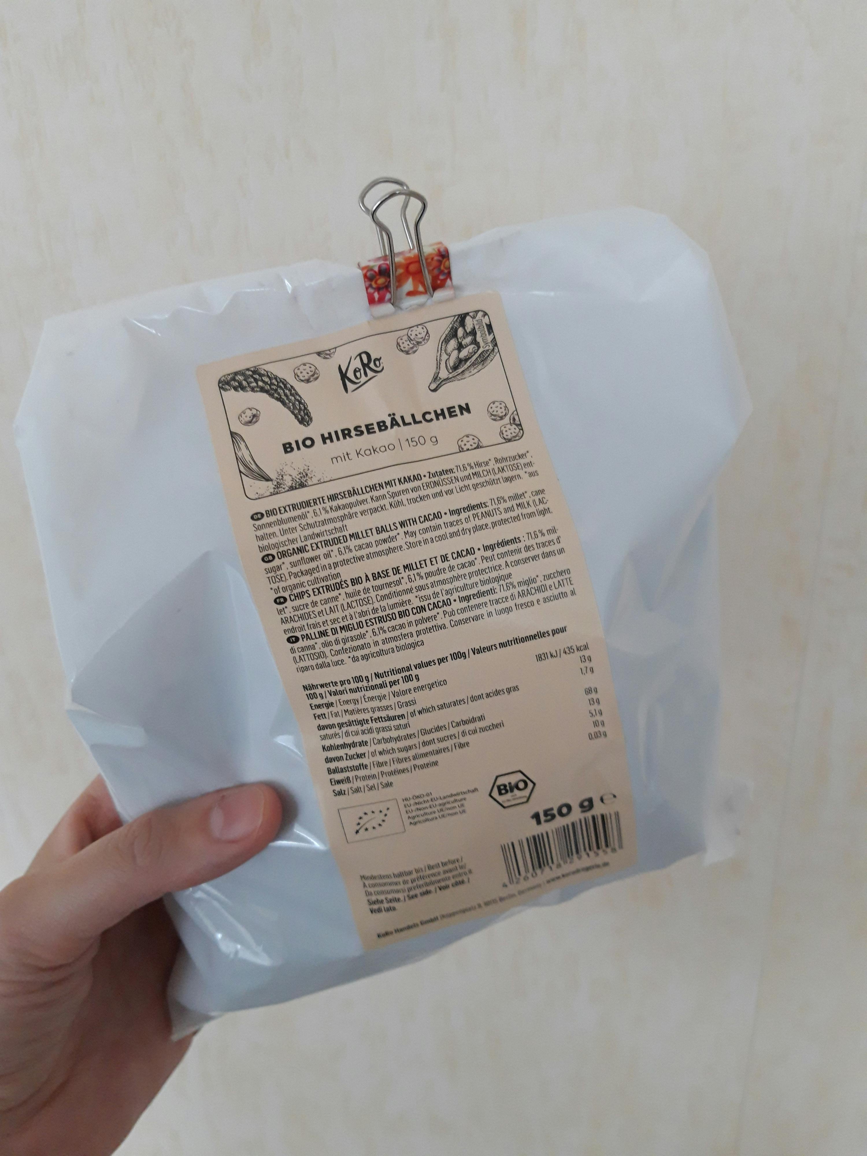 | Verkehrsbezeichnung | Bio extrudierte Hirsebällchen mit Kakao |