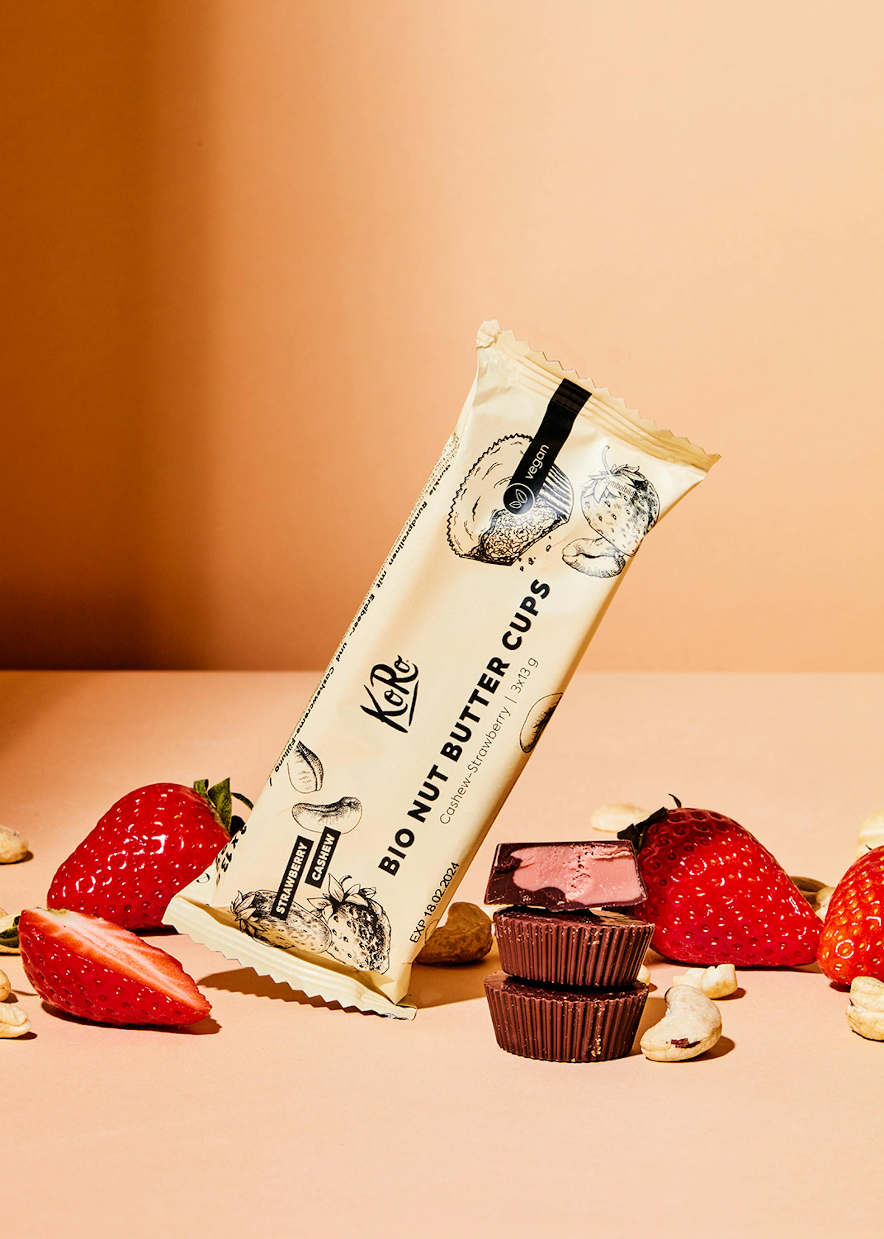 Unsere Cashew-Erdbeer Nut Butter Cups sind fruchtig-nussige, vegane Pralinen, die mit einer exquisiten Kombination aufwarten: Feinherbe Schokolade trifft auf eine Cashew-Erdbeer-Creme. Sie sind zu jeder Tee- und Kaffeepause ein absoluter Hochgenuss und für alle Fans der erdnussigen Vorlage ein absolutes Muss unter den süßen Snacks. Unsere Bio-Nut-Butter-Cups Cashew-Strawberry – jetzt bestellen!
