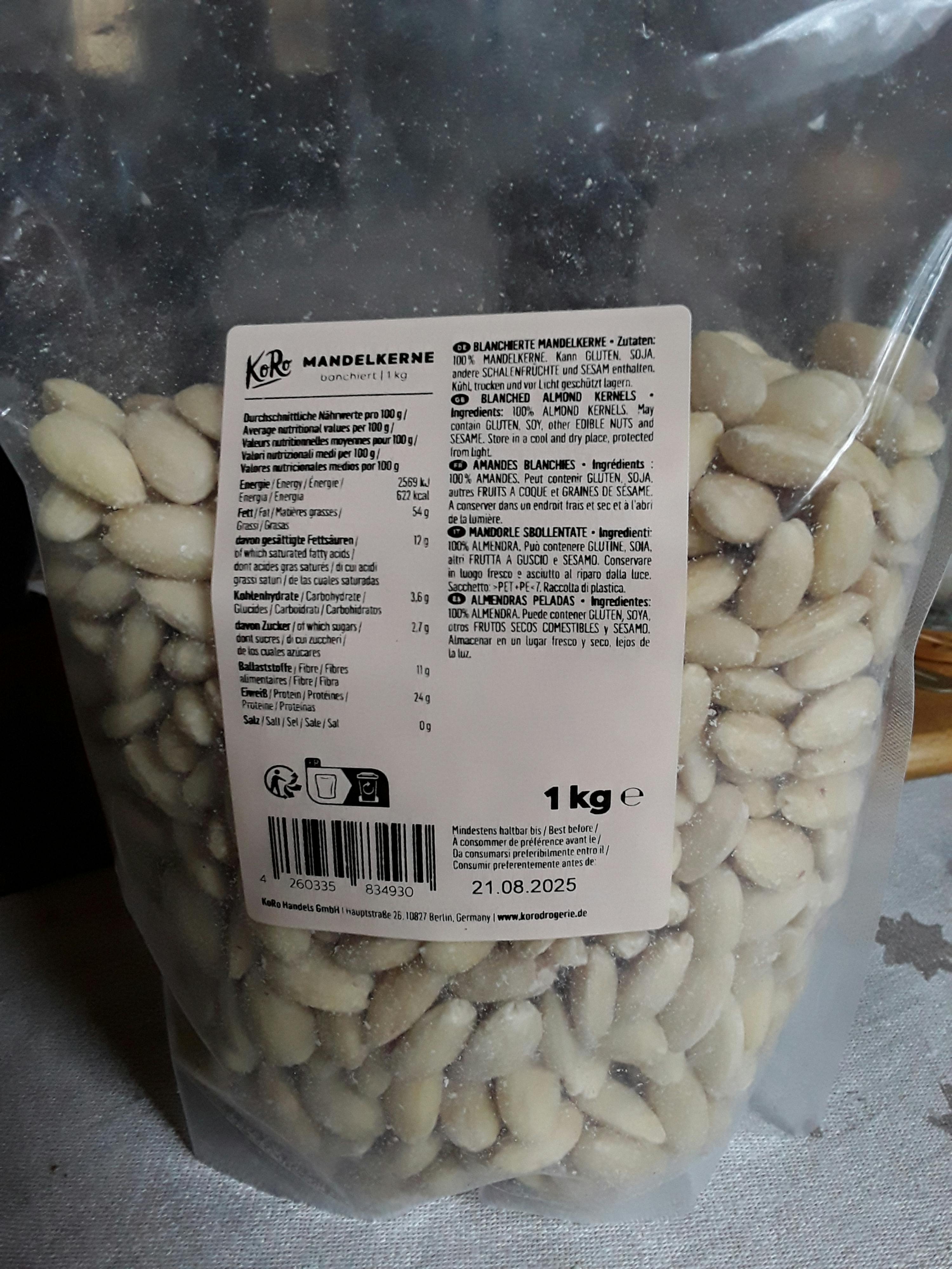 | Verkehrsbezeichnung | Blanchierte Mandelkerne |