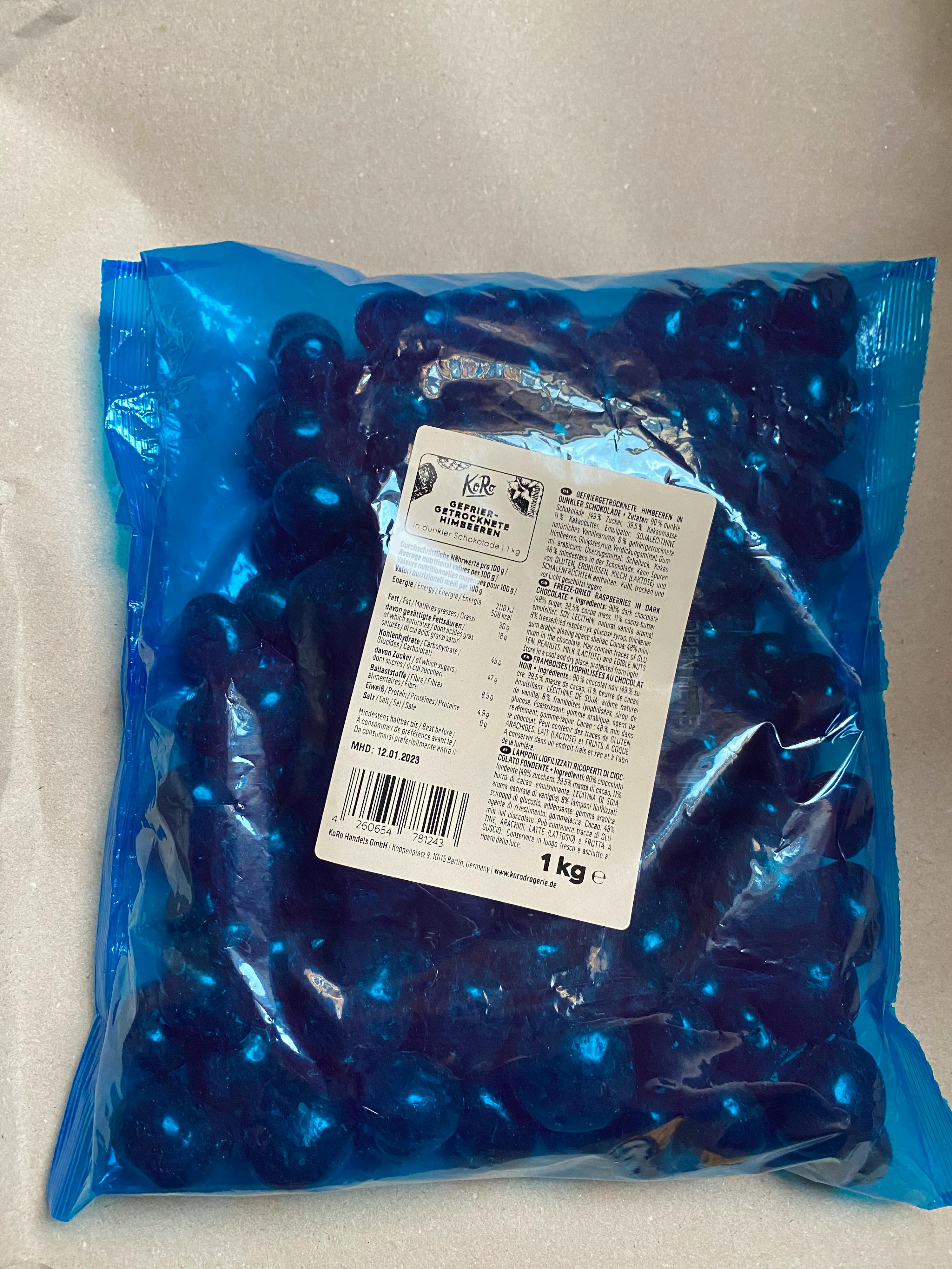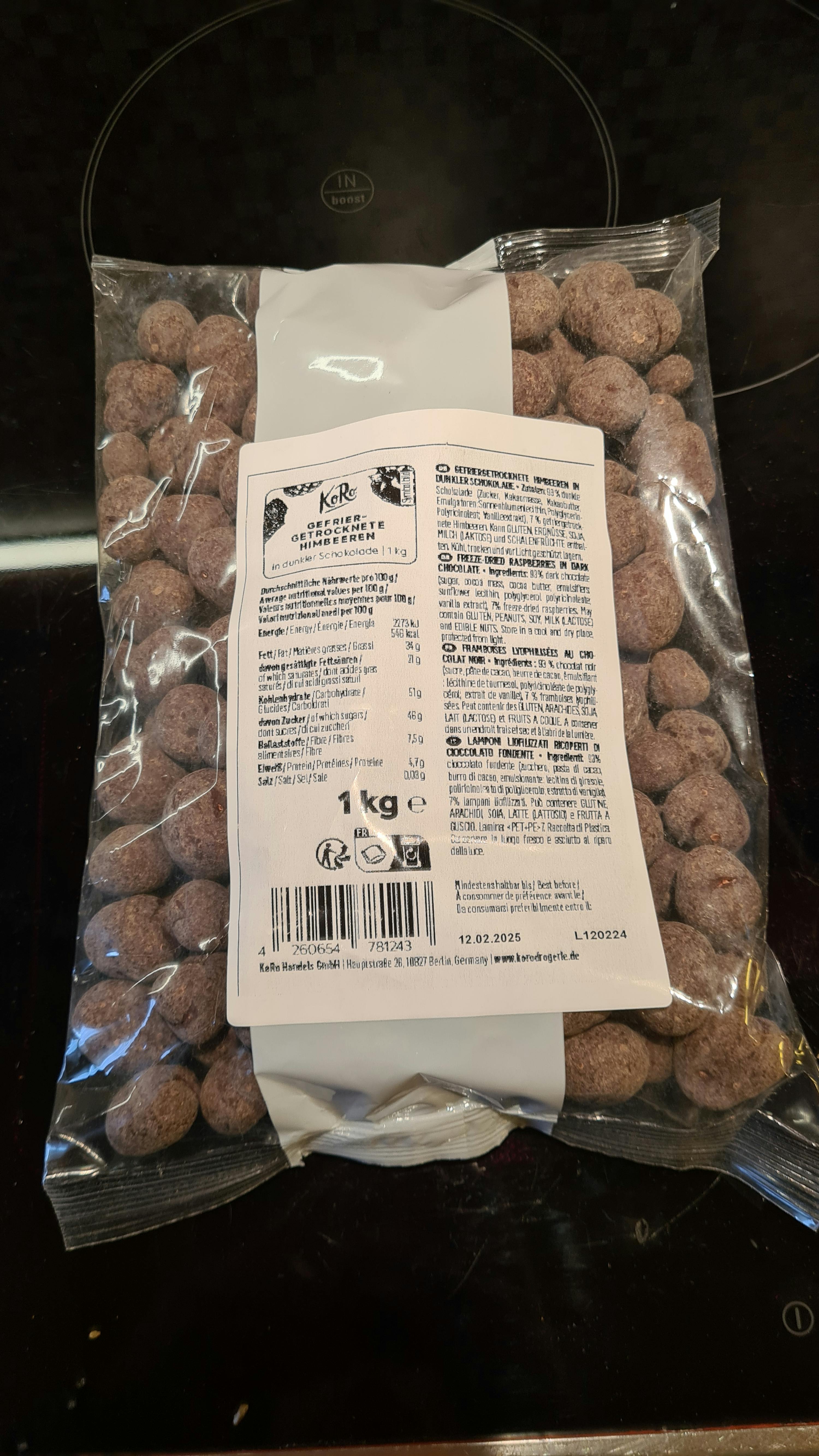 Buy now: Freeze-dried raspberries in dark chocolate 1kg