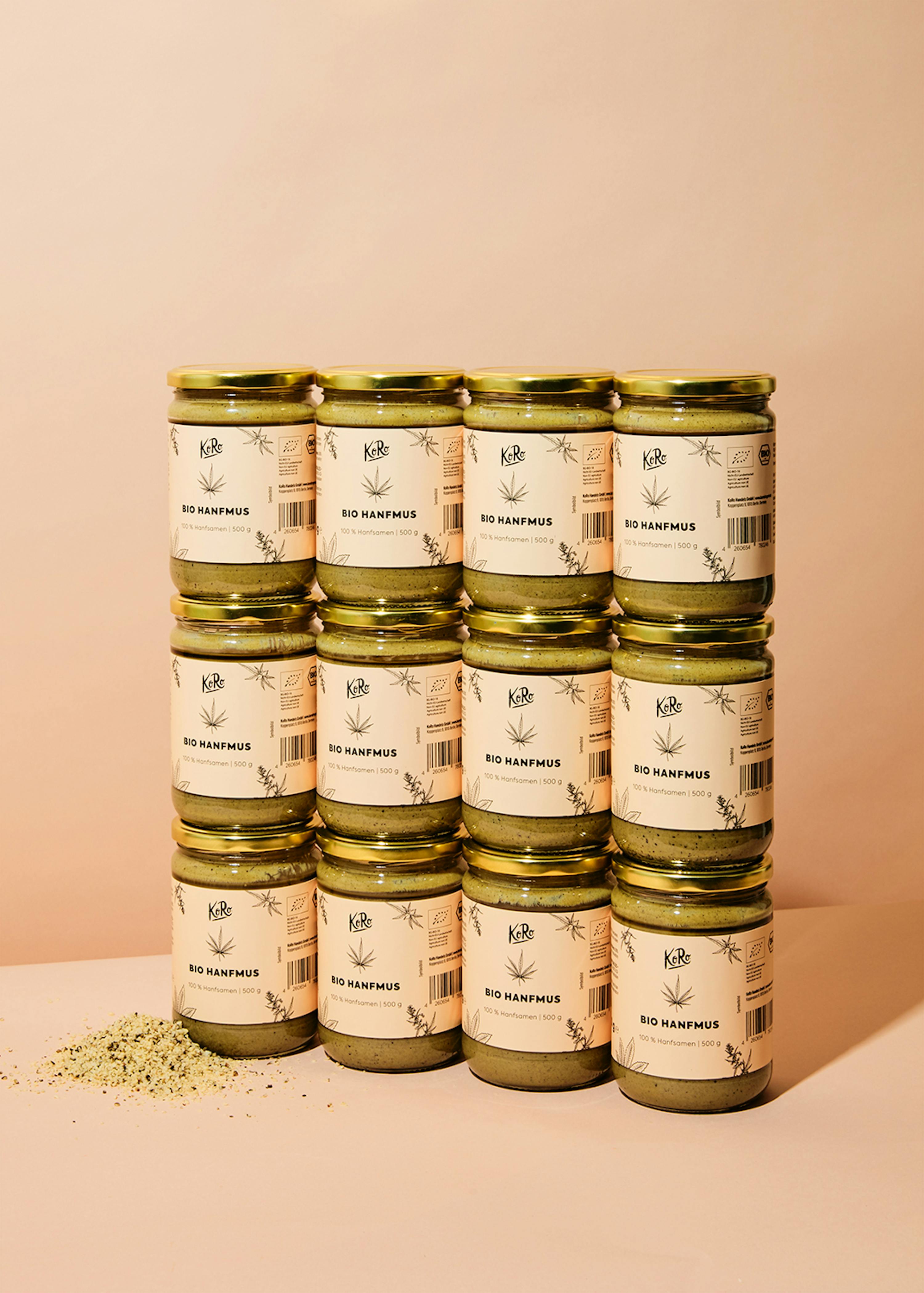 Attention foodies! Our hemp butter will not only convince our highly esteemed nut lovers: 100% roasted hemp seeds give the cream a unique flavour that will take your favourite dishes to a whole new level. If you are vegan, you can enjoy our hemp puree without any worries, it is 100 % plant-based. Our hemp puree is also gluten-free and has a high protein and fibre content. So what are you waiting for? Order our hemp butter now!