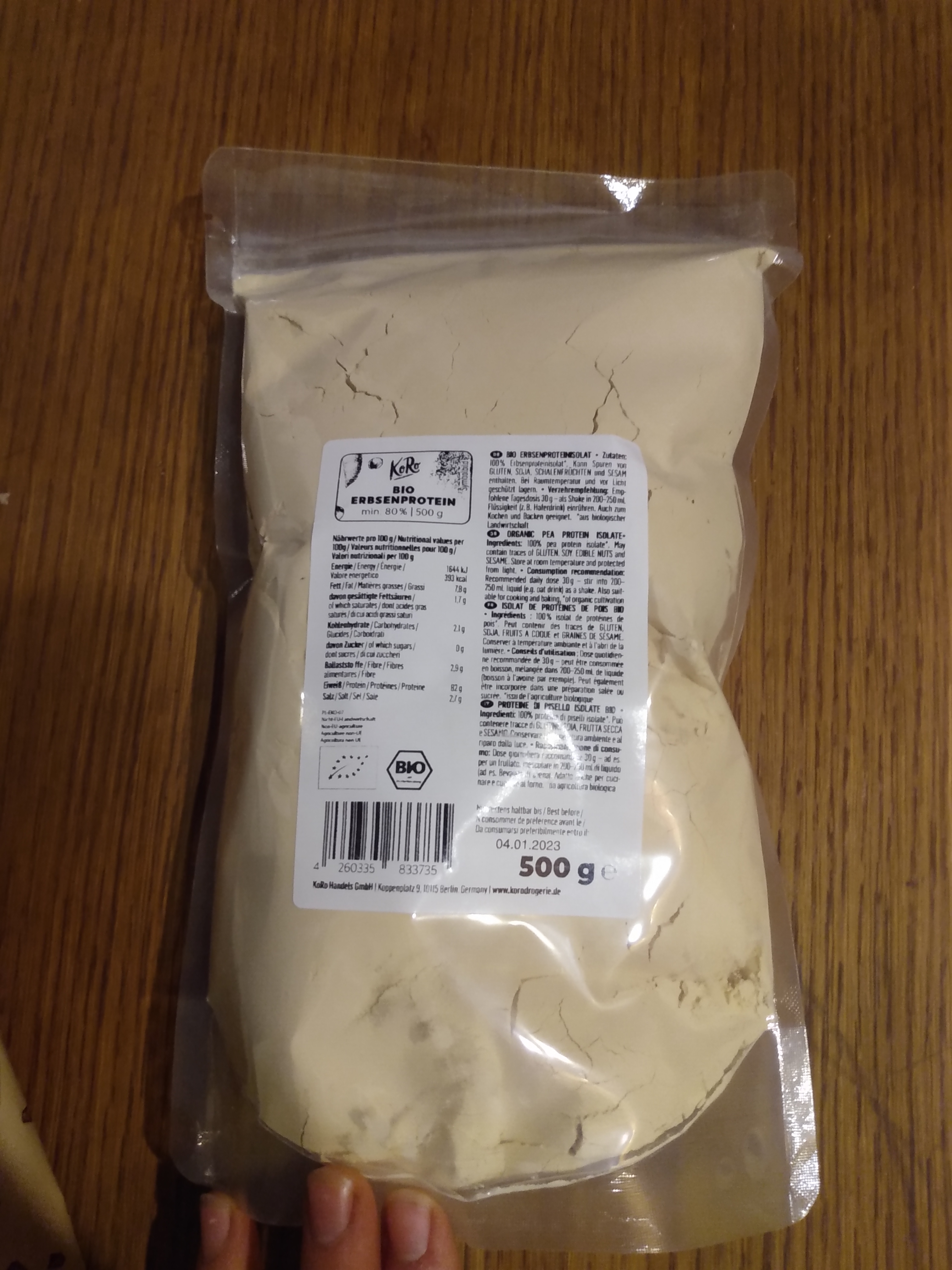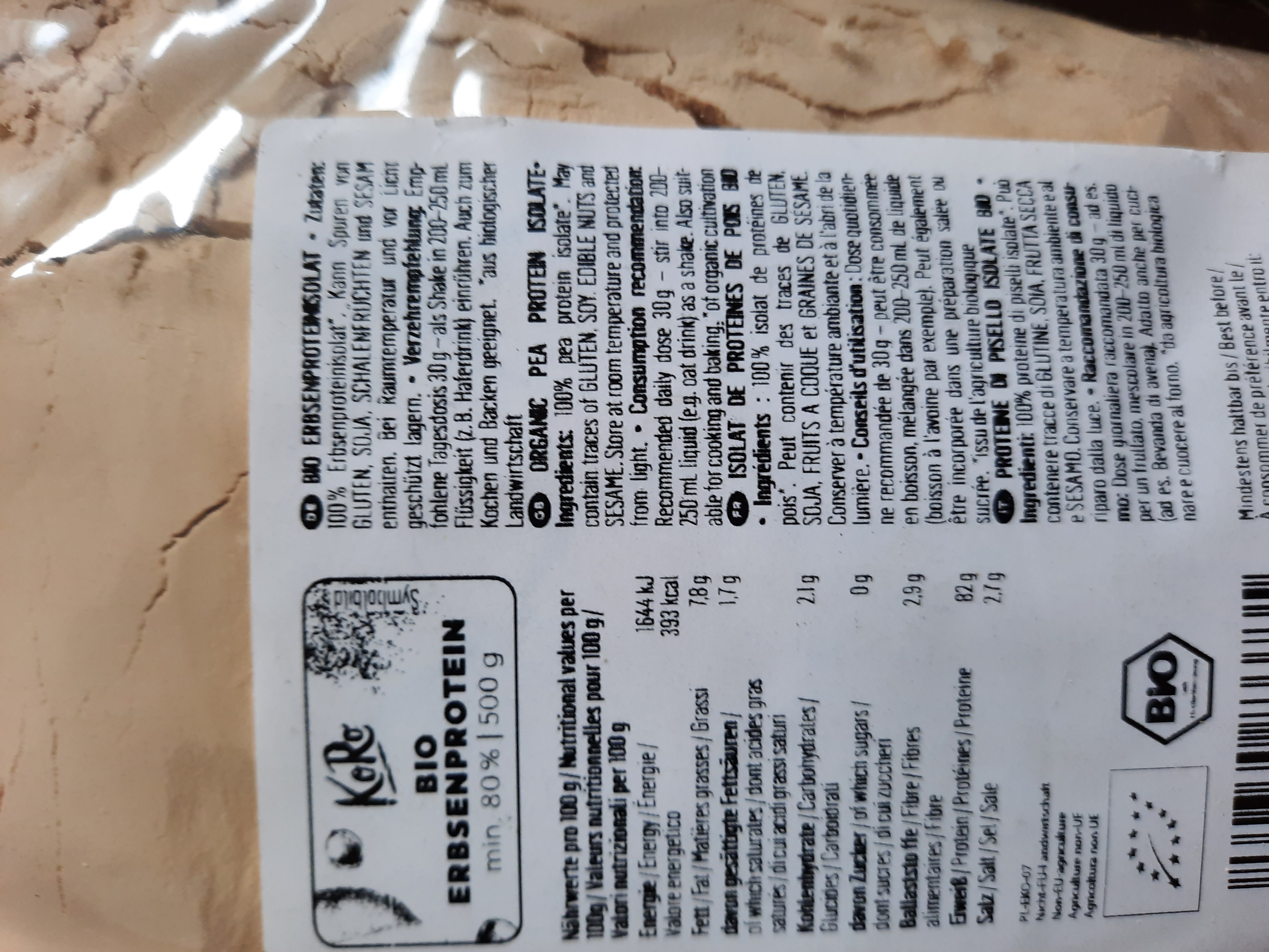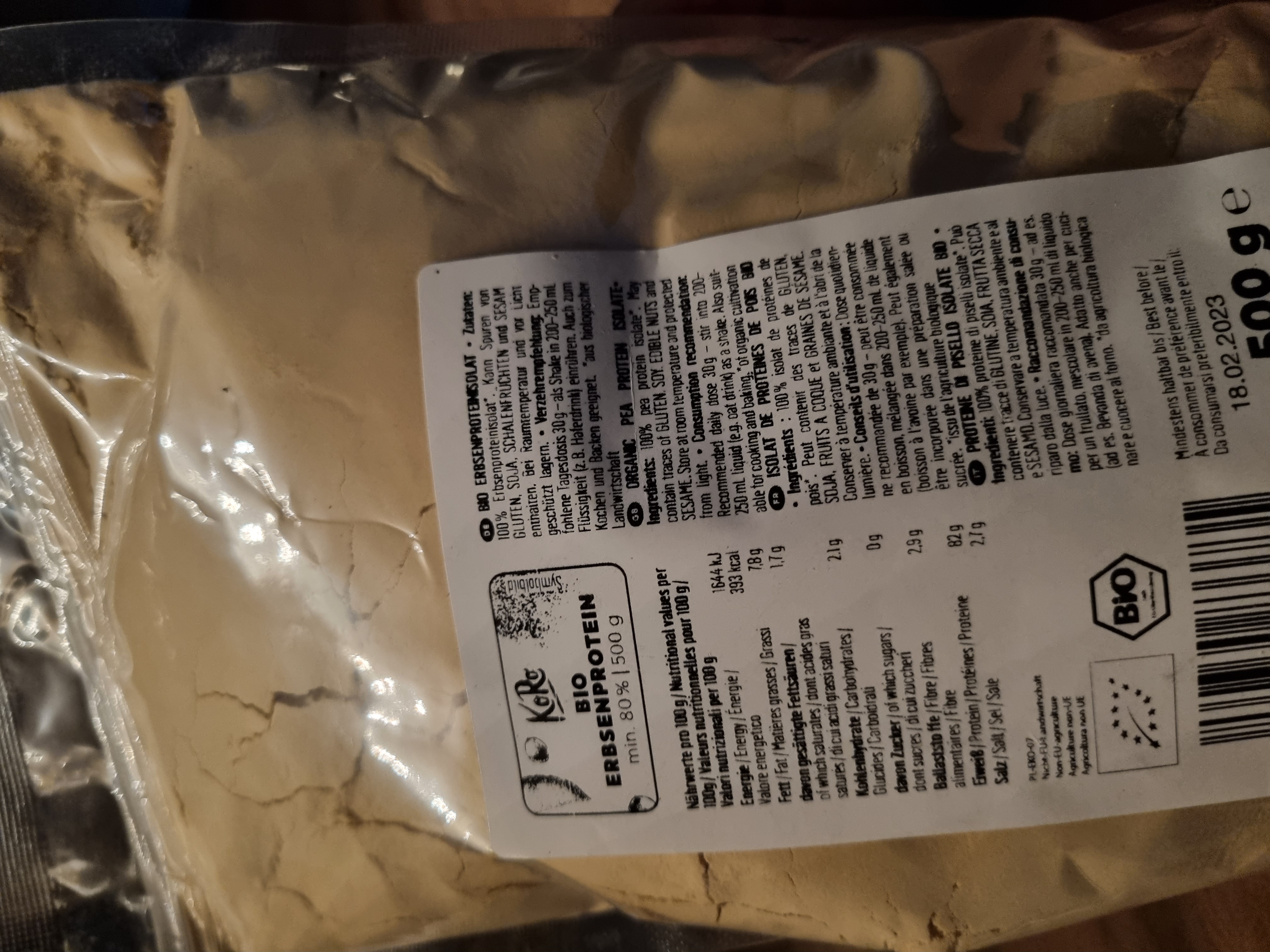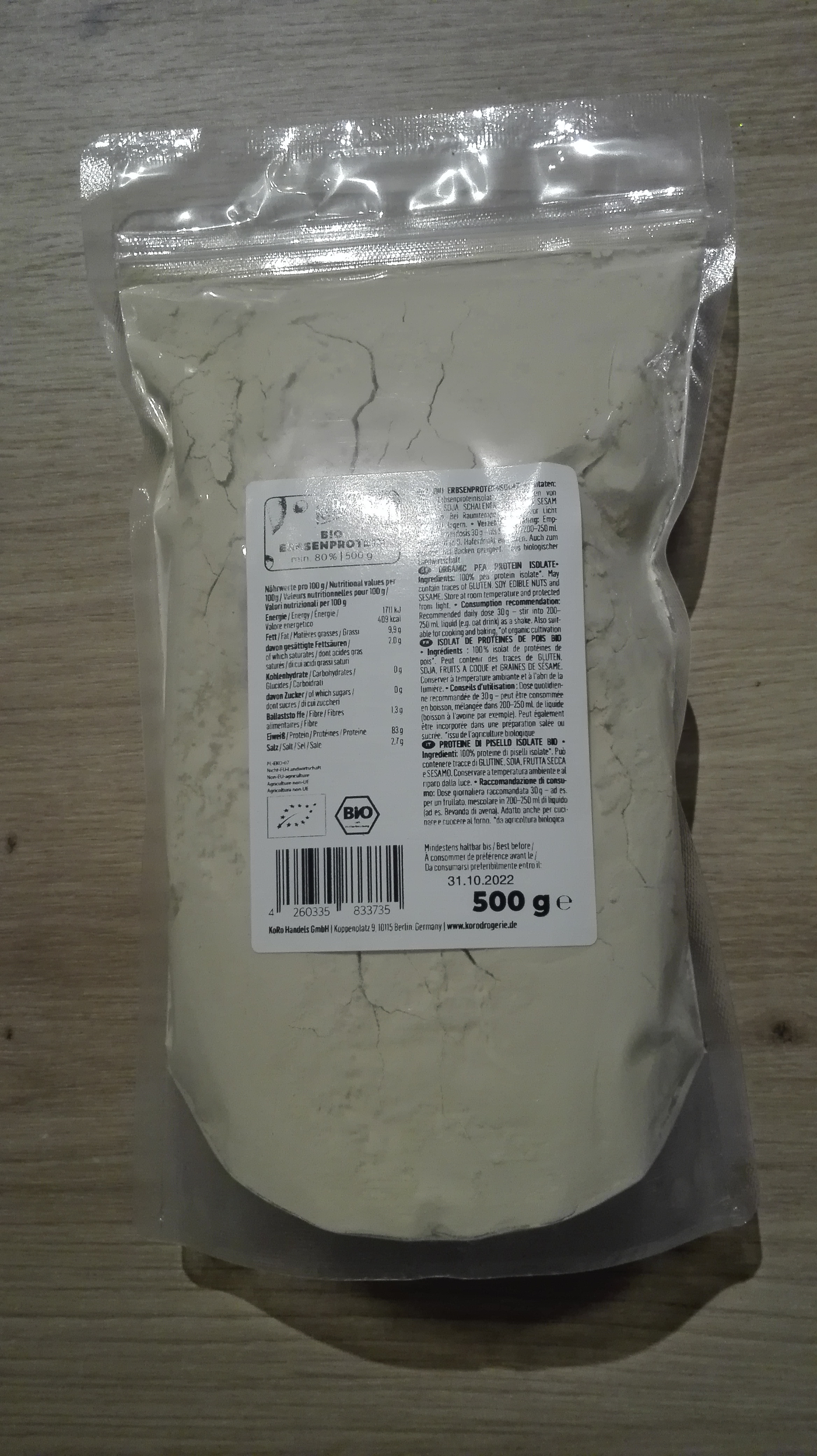 | Ingredients | 100% isolated pea protein* *from organic farming |