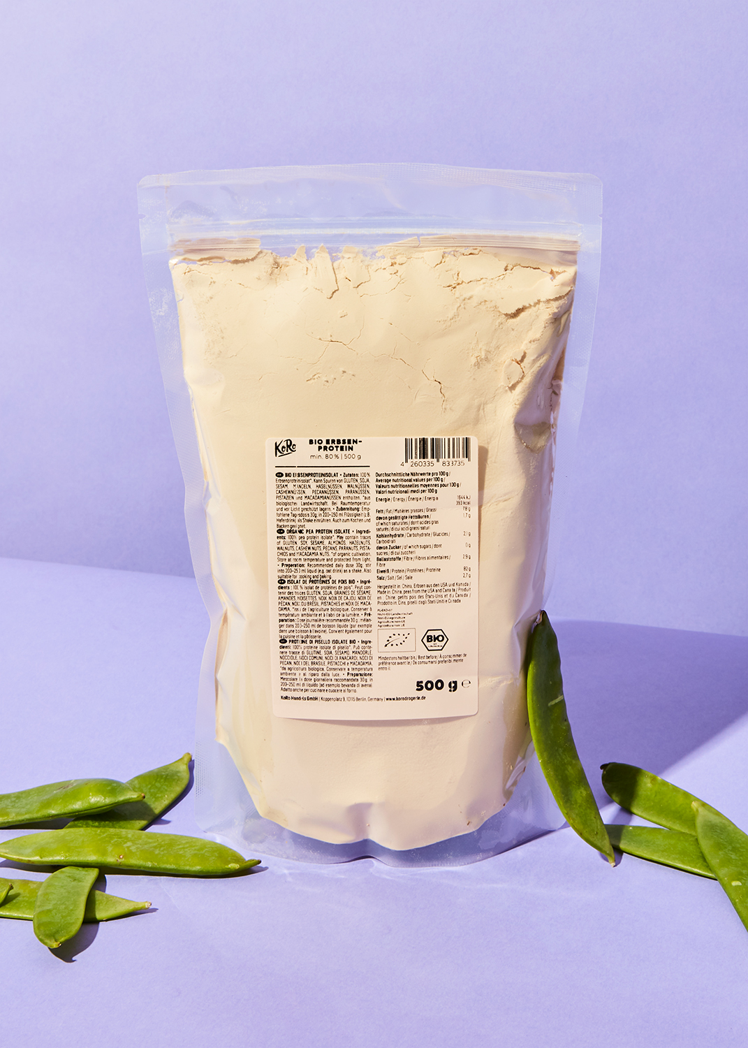 Are you passionate about sports and always on the lookout for the latest fitness secrets? Or you want to let off steam in the kitchen and avoid animal products as much as possible? Or you are simply a big fan of the small legume? Then our pea protein isolate is just right for you! It is sugar-free, has a high protein content and can be integrated into a variety of dishes - even outside the world of sports. Order organic pea protein in the 500 g pack in the UK now!