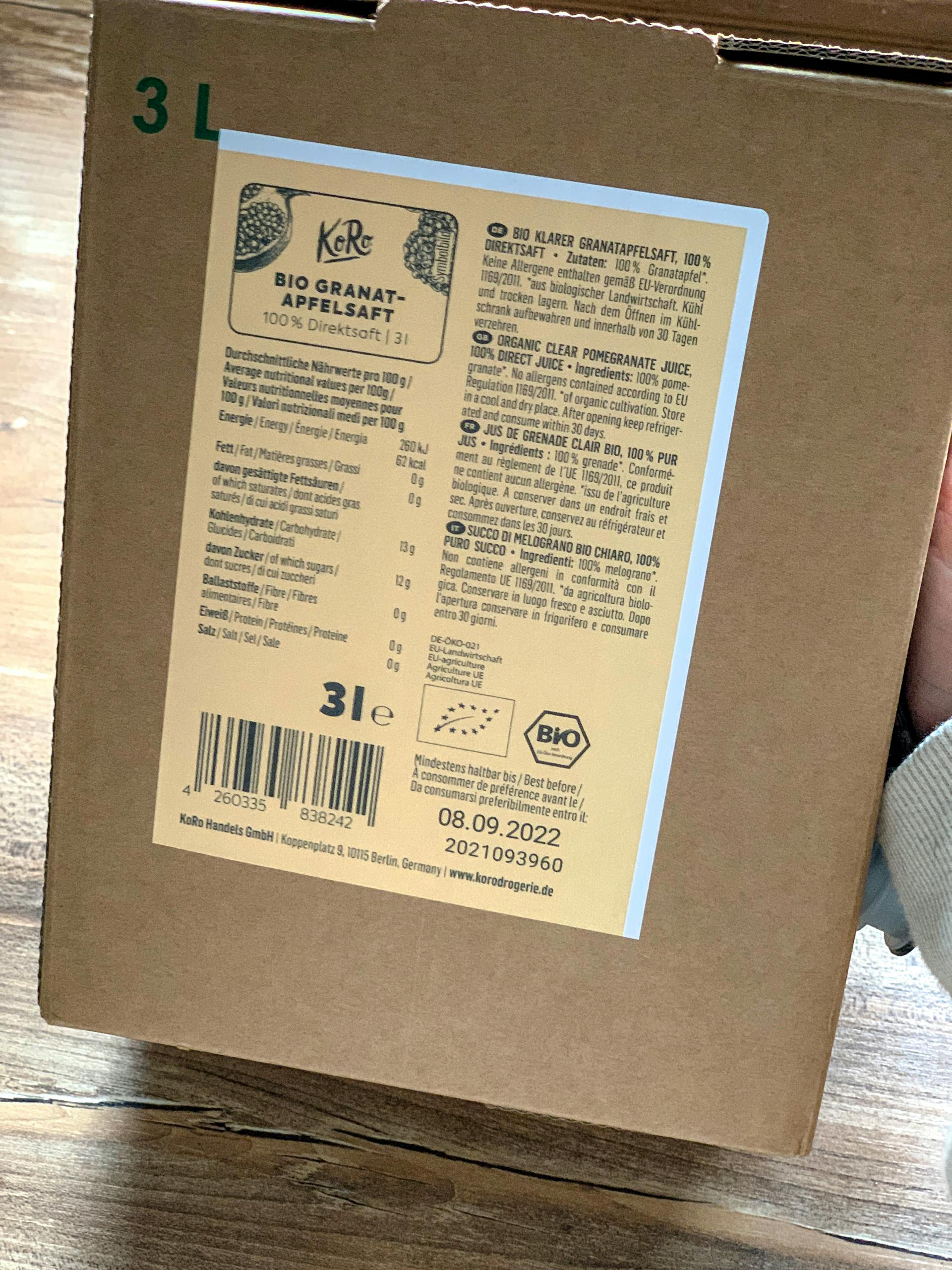 Buy now: Organic pomegranate juice bag-in-box 3L