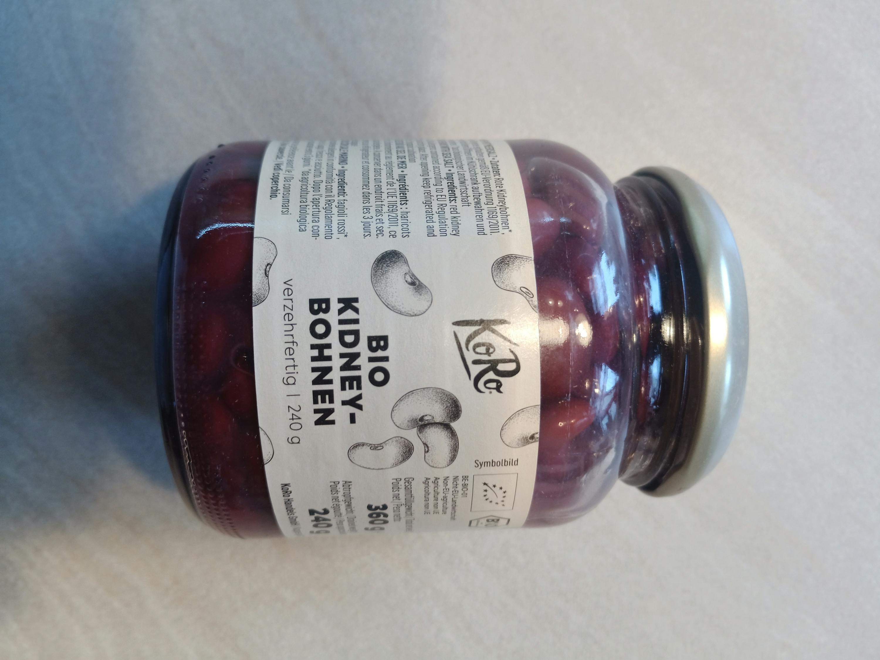 | Verkehrsbezeichnung | Rote Bio-Kidneybohnen, in Wasser eingelegt |